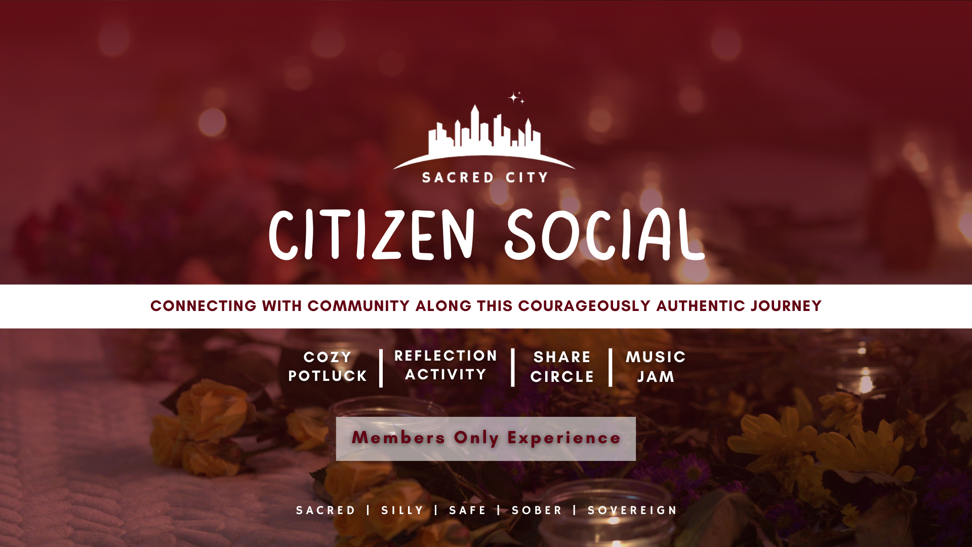 Get 1 access pass to each of our monthly Sacred City experiences to remember, embody and embrace more of your true nature